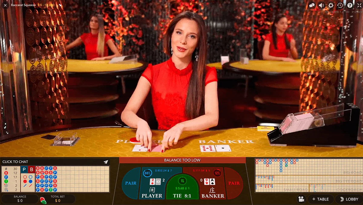 - Baccarat Squeeze : reproduit la lente révélation des cartes typique des casinos haut de gamme, ajoutant suspense et excitation.